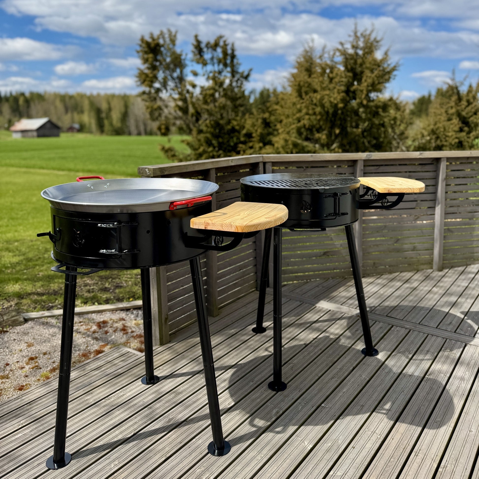 Aava on kotimainen hiiligrilli, joka on suunniteltu nimenomaan suomalaisiin olosuhteisiin – asiakkailta saatujen toiveiden pohjalta. Se on helposti purettava, nopeasti koottava ja kulkee kätevästi mukana vaikka mökille, juhliin tai retkelle. Monikäyttöinen ja halkaisijaltaan 60 cm rautagrilli tarjoaa reilusti paistopintaa, ja se toimii sekä hiilillä että erikseen hankittavalla rengaspolttimella. Aava on suunniteltu kestämään käyttöä ja aikaa – se on tehty ruoanlaittoon, ei pelkästään kesäpäivien koristeeksi.