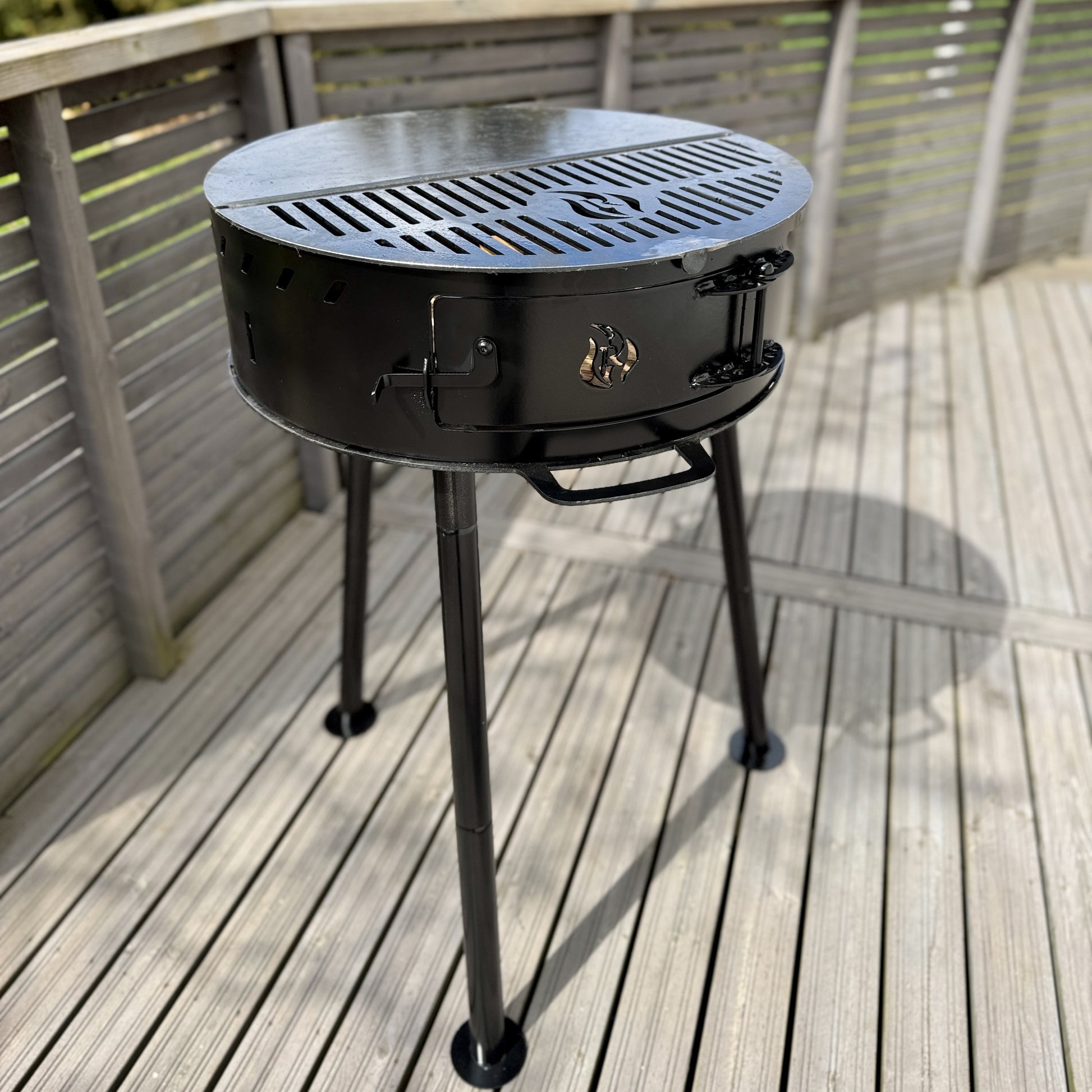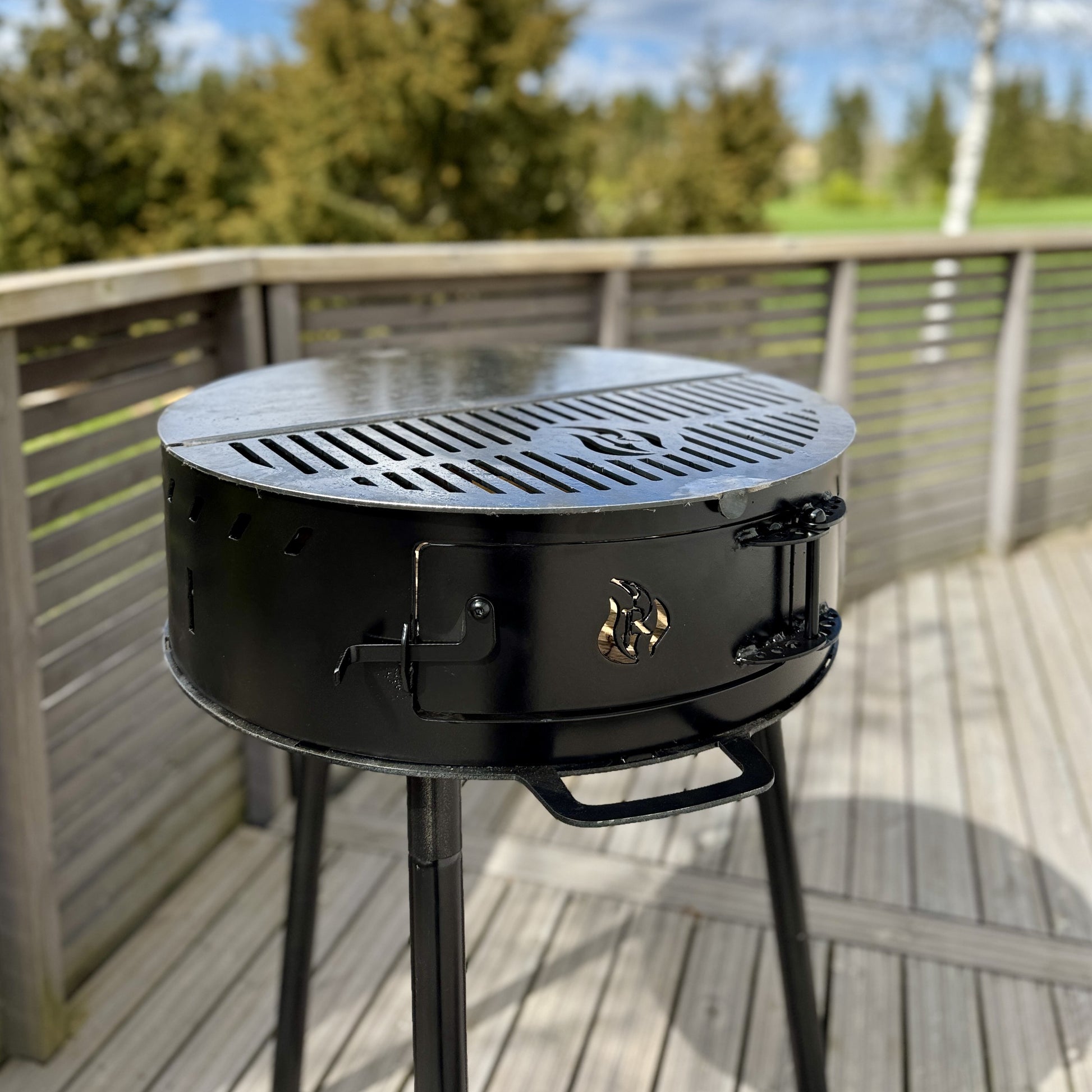 Tämä kompakti, kotimainen 60 cm rautagrilli on luotu liikkeellä olevalle grillaajalle. Se on kevyt, nopeasti purettava ja kasattava, ilman työkaluja. Olitpa mökkireissulla, laavulla, metsän reunassa tai omalla pihalla, Korpi on aina käyttövalmis.