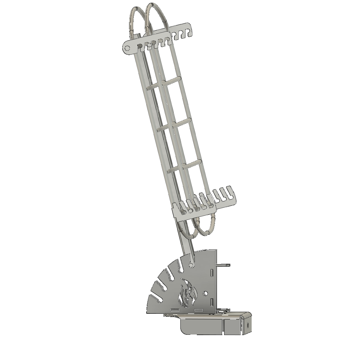 Loimu koostuu kahdesta osasta: grillin reunaan kiinnitettävästä runko-osasta sekä säädettävästä ritiläosasta. Ritilän voi asettaa viiteen eri kaltevuuteen, lähes vaakatasosta lähes pystysuoraan ja runkoa voi kääntää sivusuunnassa useaan lukittavaan asentoon. Näin saat täyden kontrollin lämmön suuntaan ja intensiteettiin.